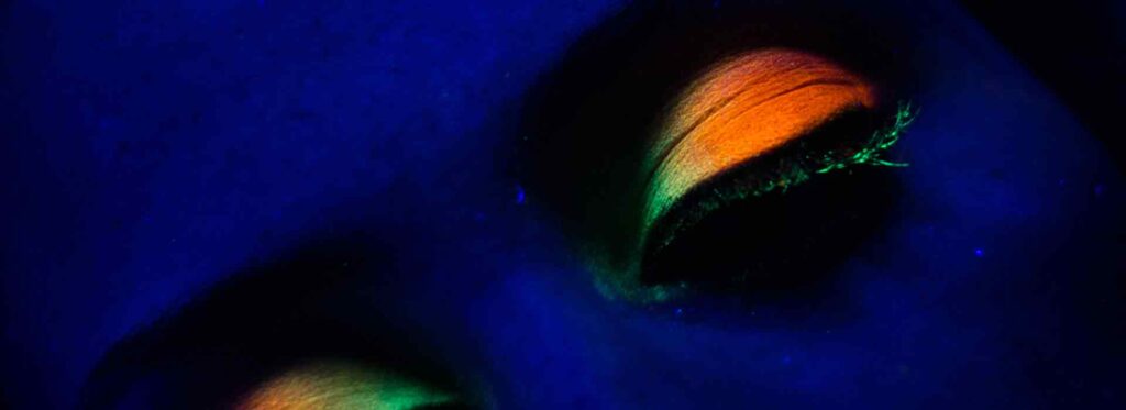 Blacklight photography is the technique of photography that involves shooting a subject under ultraviolet light. Human eyes cannot perceive, these kinds of lights easily. As they appear to emit very little light. Because the bluish UV light is at the very end of the visible spectrum (colors we can perceive with naked eyes). That’s why we cannot see much of the output as it is invisible to us. Fortunately, the Ultra Violet light can cause white or neon colors to produce visible light. Thus, making it glow that looks great when used with body paint.